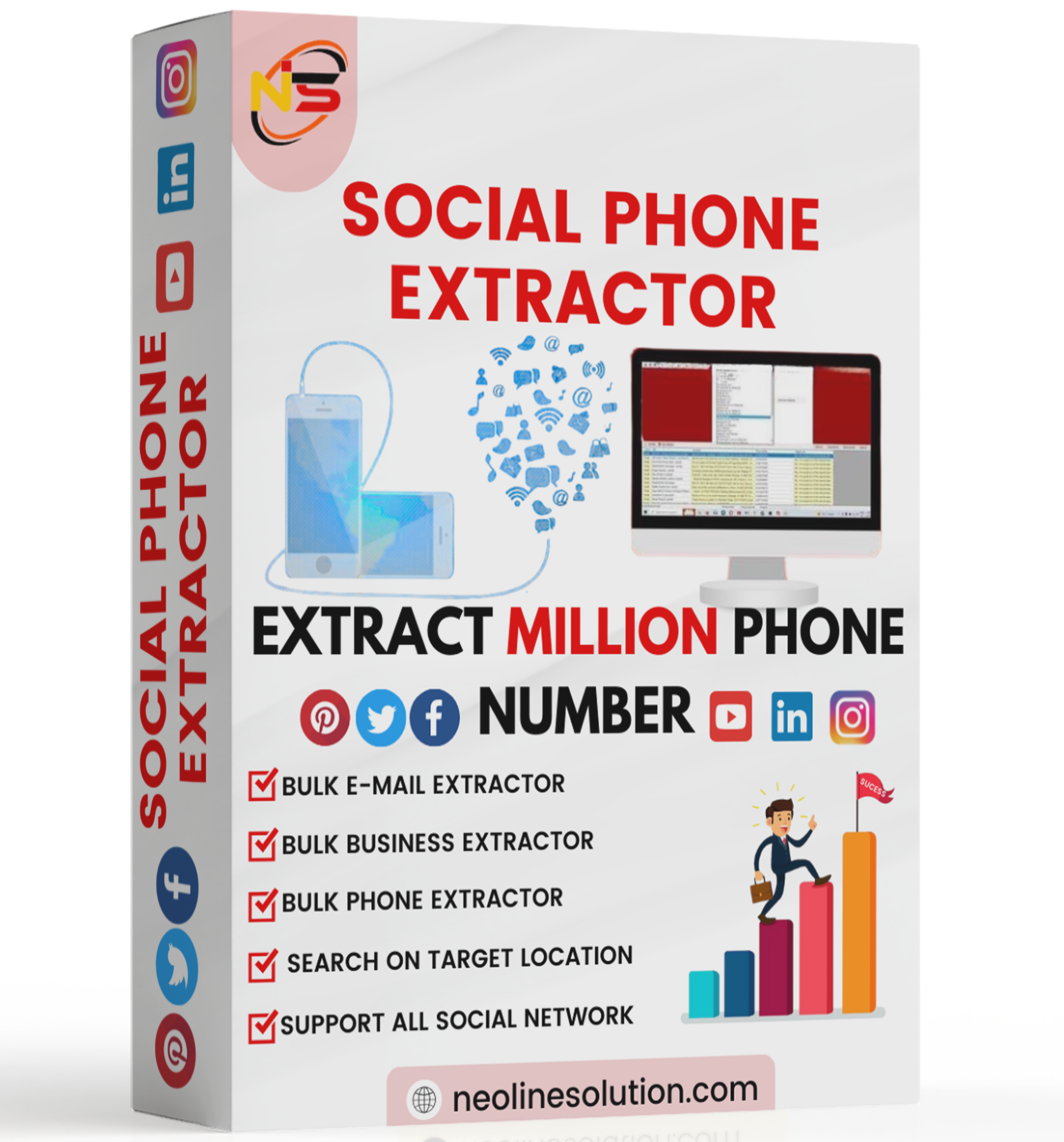 Collect publicly listed phone numbers from social platforms for sales prospecting.